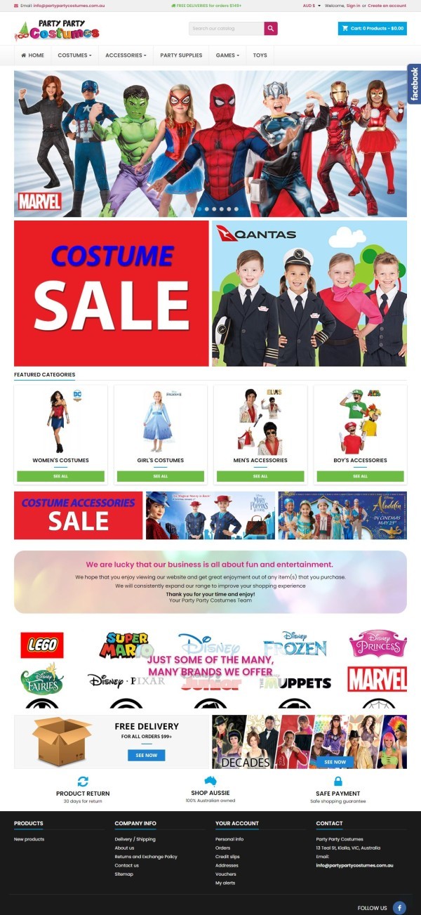 Step into the enchanting world of Party Party Costumes, where every day is an occasion to celebrate. Servicing Australia and New Zealand, this online e-commerce store is your one-stop destination for fancy-dress costumes, accessories, party supplies, and a treasure trove of toys and games.