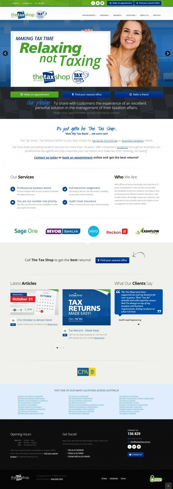 After developing an internal appointment booking system for The Tax Shop back in 2012, Mad Web Skills were approached to bring their old, tired website up-to-date with a sleek, modern design and a responsive layout that works great across all devices.